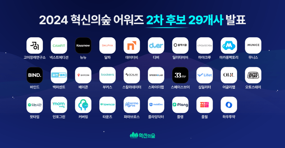 2024 혁신의숲 어워즈, 2차 후보 29개 스타트업 선정