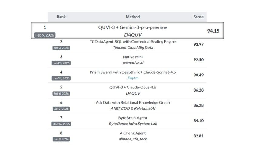 이번 평가에서 다큐브는 DBT(Data-Based Text-to-SQL) 트랙과 Lite 트랙에서 지난해에 이어 올해도 1위를 유지한 데 이어, 가장 난이도가 높은 Snow 트랙까지 1위를 차지하며 전 트랙을 순차적으로 석권했다. 2위는 중국 텐센트가 차지했다.