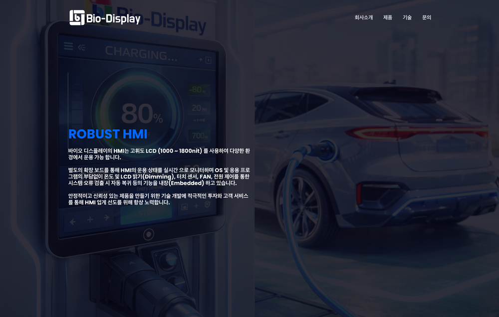 EV 충전기 전용 HMI(Human-Machine Interface) 전문 기업 바이오디스플레이(Viodisplay, 대표 조호연)가 옥외 환경에 특화된 스마트 HMI 기술 고도화를 성공적으로 마치고 국내 주요 충전기 제조사들과의 협업을 본격화한다. 전기차 보급 확대로 충전 인프라가 급증하는 가운데, 기상 조건에 따른 잦은 고장 문제를 해결할 대안으로 주목받고 있다. ▪ 고온 흑화·한파 오작동 정면 돌파… 현장 신뢰성 확보 일반적으로 야외 충전기는 고온 환경에서의 화면 흑화(Black-out) 현상이나 동절기 한파로 인한 터치 오작동, 습기 및 분진에 의한 내부 부식 등 극한 환경에 취약한 모습을 보여왔다. 바이오디스플레이가 개발한 EV 충전기 전용 HMI는 LCD 모듈, 터치패널, 터치글라스로 구성되며, 고강도 설계를 통해 이러한 현장의 고질적인 문제들을 해결했다. 조호연 바이오디스플레이 대표는 “전기차 충전기는 화려한 스펙보다 옥외의 혹독한 현장에서 고장 없이 버텨주는 신뢰성이 진짜 실력”이라고 강조했다. ▪ 경북대 창업지원단 ‘창업도약패키지’ 통해 기술 정밀도 높여 이번 기술 고도화와 파트너십 확대에는 경북대학교 창업지원단이 주관하는 ‘창업도약패키지’의 지원이 핵심적인 역할을 했다. 바이오디스플레이는 해당 프로그램을 통해 다음과 같은 성과를 거뒀다. • 기술 고도화: 하드웨어 설계 정밀도를 높이고 소프트웨어 최적화 및 안전 알고리즘 구조화를 동시에 달성했다. • 사업화 지원: 각종 인증 확보, 판로 확대 가이드, 조달청 나라장터 등록 추진 등 실질적인 밀착 지원이 이뤄졌다. ▪ SK시그넷·현대케피코 등 국내 주요 제조사와 파트너십 구축 개발 프로세스가 체계화되면서 고객사 규모도 대폭 확장됐다. 바이오디스플레이는 현재 SK시그넷(SK Signet), 현대케피코(Hyundai Kefico), 모던텍(Moderntec), 크로커스(Crocus) 등 국내를 대표하는 주요 전기차 충전기 제조사들과 지속가능한 협력 구조를 구축하고 있다. 바이오디스플레이는 공공 환경에 최적화된 전용 모델 라인업을 확장해 국내를 넘어 글로벌 EV 충전 시장의 기준점이 되는 브랜드로 자리매김할 계획이다. Welaunch 이나은 기자 스타트업 뉴스 플랫폼, 위런치 © 2024 Welaunch. All Rights Reserved 보도자료/기고 : editor@welaunch.kr 광고/제휴 문의: we@welaunch.kr