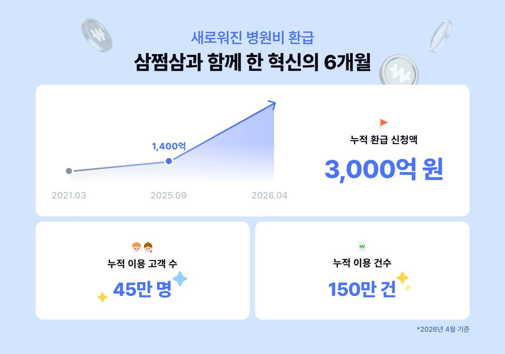 삼쩜삼 ‘병원비 환급’ 누적 신청액 3,000억 돌파