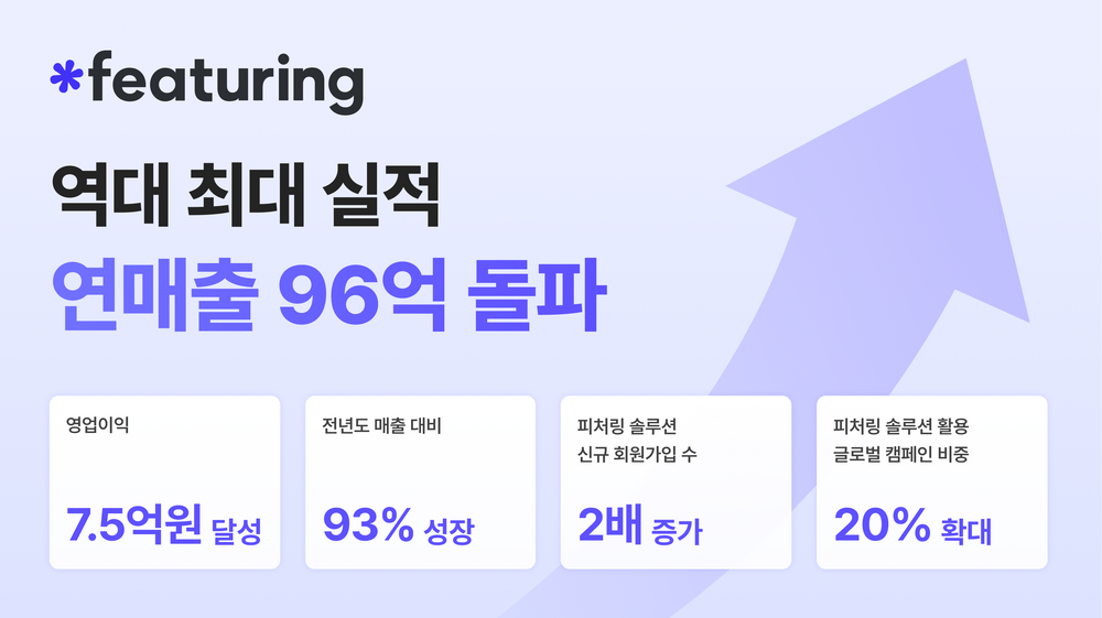 이번 실적 성장은 회원가입 수 증가가 주요 동력이었다. 지난해 피처링 솔루션의 대대적인 기능 고도화로 신규 회원가입 수가 약 2배 증가했다. 특히 고객사 평균 광고 수익률(ROAS)은 450%에 달했으며, 2회 이상 재이용 고객사 비중도 전체의 75%를 기록하며 높은 충성도를 보였다.