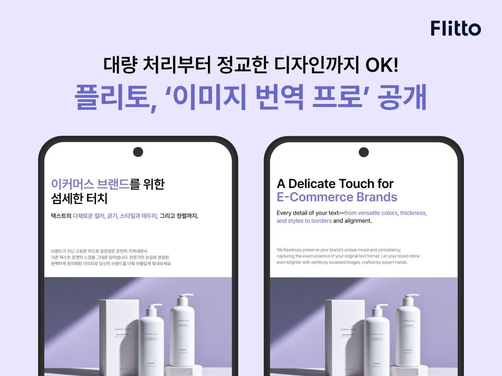 이번 서비스의 가장 큰 차별점은 번역 후에도 브랜드 아이덴티티와 시각적 완성도를 유지한다는 것이다. 기존 이미지 번역 솔루션들은 텍스트만 번역할 뿐 디자인 요소가 깨지거나 일관성이 떨어지는 경우가 많았지만, 플리토의 ‘이미지 번역 프로’는 이를 획기적으로 개선했다.