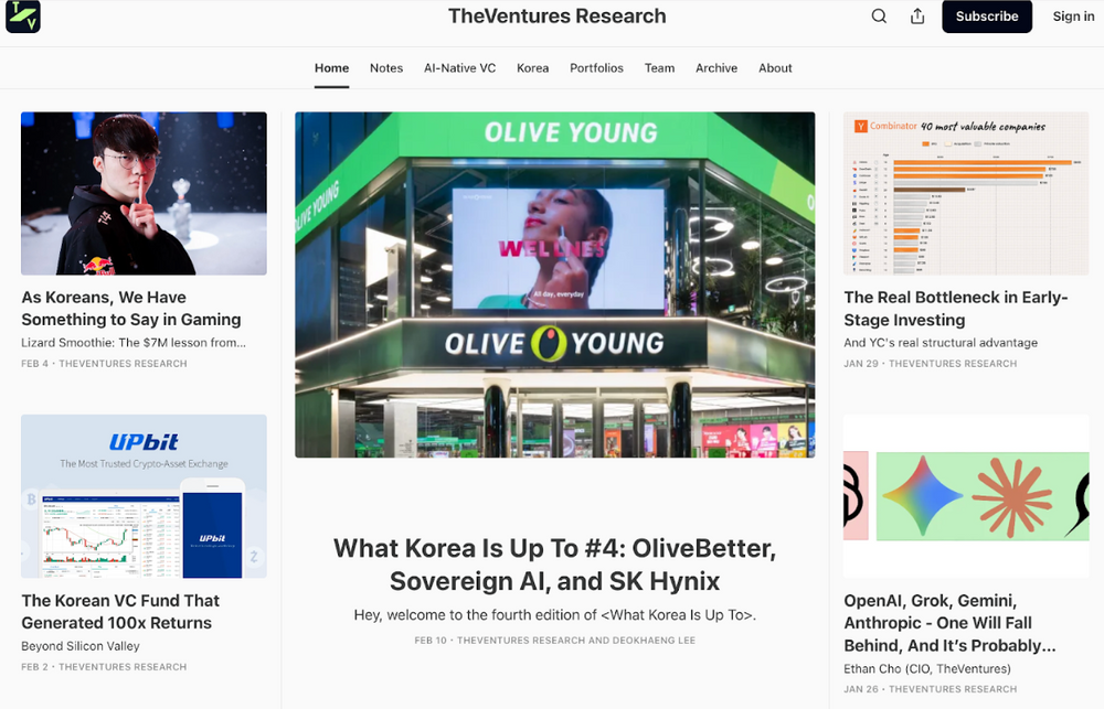 글로벌 초기 투자 전문 벤처캐피탈 더벤처스가 국내 스타트업의 해외 투자 유치를 지원하기 위해 전용 영문 미디어 채널 ‘더벤처스 리서치(TheVentures Research)’를 공식 론칭했다고 19일 밝혔다. 최근 OpenAI, Google 등 글로벌 빅테크 기업들이 한국 스타트업에 잇따라 투자하면서 해외 투자자들의 한국 시장 관심이 급증하고 있다. 더벤처스는 이러한 흐름에 발맞춰 Andreessen Horowitz(a16z), Sequoia Capital 등 실리콘밸리 탑티어 VC들이 오랫동안 활용해온 ‘미디어 기반 투자 전략’을 국내에 처음으로 도입했다. 이 전략은 투자사가 직접 산업 미디어를 운영하며 포트폴리오 기업의 해외 노출을 확대하고, 글로벌 파트너십 및 투자 유치를 지원하는 방식이다. 더벤처스는 국내 주요 VC 가운데 영문 미디어 콘텐츠를 정기 발행하는 첫 사례로 평가받고 있다. 더벤처스는 론칭과 함께 자체 개발한 AI 심사역 ‘비키(Vicky)’의 6개월 운영 성과도 공개했다. 비키는 인간 심사역과의 판단 일치율 87.5%를 기록했으며, 기존 한 달 이상 걸리던 투자 심사 기간을 1주로 단축했다. 이를 통해 심사 효율성을 높이고 투자 의사결정 속도를 크게 개선했다는 평가다. 또한 중국 커머스 기업의 한국 시장 진출에 따른 리테일 시장 변화, 한국 스타트업 생태계의 성장 동력 분석 등 투자 현장에서 직접 확보한 1차 데이터를 기반으로 정기 리포트를 발행하고 있다. 론칭 이후 뉴스레터 구독자 중 약 40%가 해외 독자로 집계됐으며, 이들 대부분이 투자·금융 업계 종사자인 것으로 나타났다. 월가 주요 금융기관 관계자, 실리콘밸리 창업가, 해외 기관 투자자 등이 독자층에 포함돼 있으며, 이를 계기로 해외 투자사 및 기관 투자자들의 협업 문의가 잇따르고 있다고 회사 측은 전했다. ‘더벤처스 리서치’ 콘텐츠는 더벤처스 파트너와 심사역이 직접 필진으로 참여해 작성된다. 더벤처스는 향후 분기별 한국 투자 산업 리포트와 포트폴리오사의 글로벌 진출 성과를 공개해 해외 투자자들이 국내 산업 동향을 파악하는 데 실질적인 참고 자료로 활용될 수 있도록 한다는 계획이다. 김철우 더벤처스 대표는 “미디어 영향력과 네트워크 역량은 이제 벤처캐피탈의 핵심 경쟁력 중 하나”라며 “AI 기술과 미디어 전략을 결합해 국내 스타트업의 해외 시장 진출을 적극 지원하겠다”고 밝혔다. OpenAI·Google 등 글로벌 빅테크의 한국 투자 확대와 맞물려 국내 스타트업의 해외 노출이 그 어느 때보다 중요한 시점에서, 더벤처스의 영문 미디어 채널 론칭은 K-스타트업의 글로벌 도약을 위한 새로운 연결고리가 될 전망이다. Welaunch 이나은 기자 스타트업 뉴스 플랫폼, 위런치 © 2024 Welaunch. All Rights Reserved 보도자료/기고 : editor@welaunch.kr 광고/제휴 문의: we@welaunch.kr