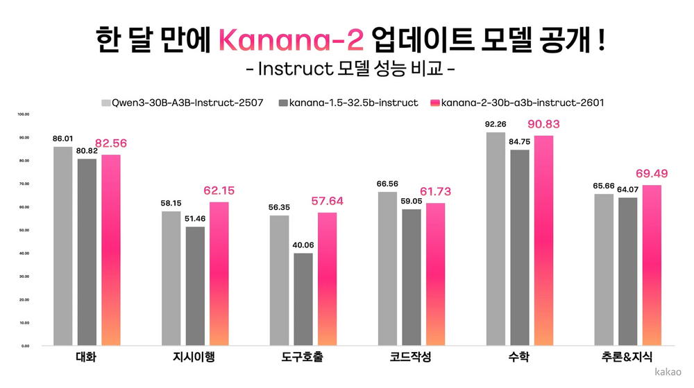 카카오, 오픈소스 LLM ‘Kanana-2’ 대폭 업데이트… 4종 모델 추가 공개
