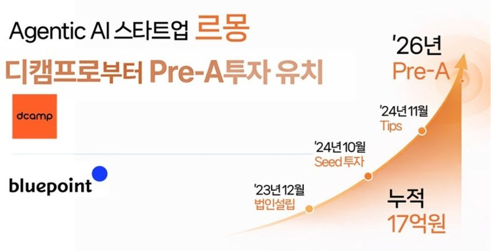 외식업 인공지능(AI) 솔루션 스타트업 ㈜르몽(이하 르몽)이 은행권청년창업재단(디캠프)과 블루포인트파트너스로부터 총 10억 원 규모의 프리 A(Pre-A) 투자를 유치했다고 21일 밝혔다. 이로써 르몽의 누적 투자 유치 금액은 총 17억 원을 기록하게 됐다.
